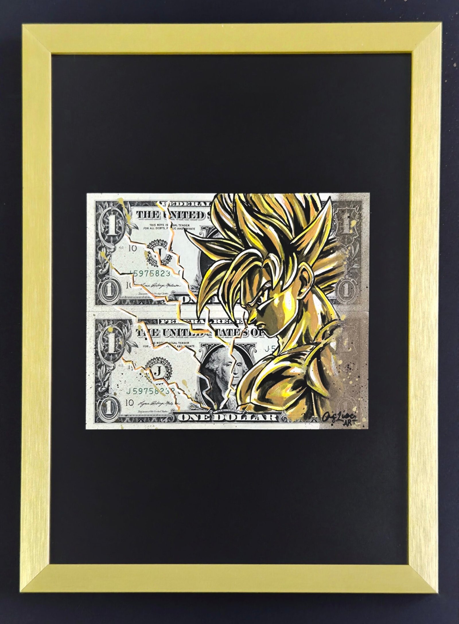Gold Goku realizzato su due dollari per la collezione Dollar Art.
